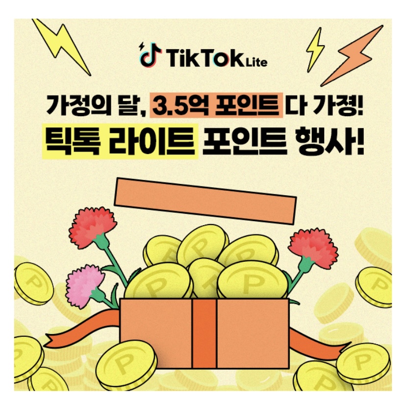 틱톡 라이트 가정의 달 3.5억 포인트 이벤트!