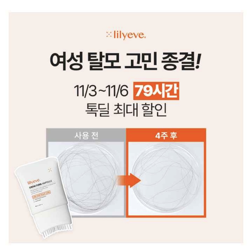 여성 탈모엔 릴리이브 그로우턴! 최대 50% 할인 진행