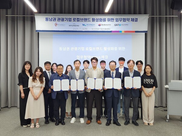 한국관광공사(사장직무대행 서영충, 이하 ‘공사’)는 현대백화점, 부산관광공사, 울산문화관광재단, 경남관광재단과 함께 지난 24일, 부산관광기업지원센터에서 ‘동남권 관광기업 로컬브랜드 활성화’를 위한 업무협약을 체결했다.