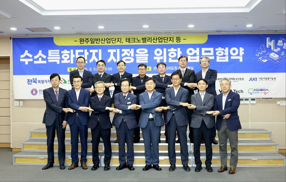 이번 업무협약은 산업통상자원부의 ‘수소특화단지’ 지정 공모에 공동 대응하고, 완주군 봉동읍 일원의 산업단지를 중심으로 수소모빌리티 중심의 생태계를 구축하기 위한 것으로, 공사를 포함한 총 16개 기관·지자체·기업이 참여했다.
