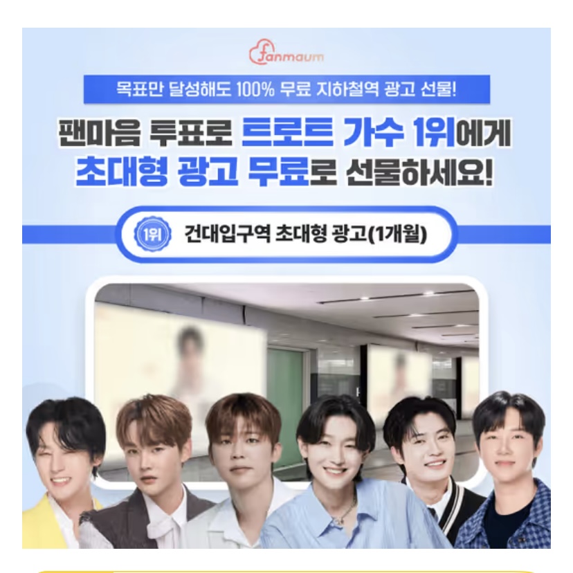 박지현, 김용빈, 손빈아 등이 있는 팬마음 트로트 스타 52차 투표에서 2위를 달성한 남녀 스타에게는 OOOO T1역에 LED 광고를 2주 간 해드려요!