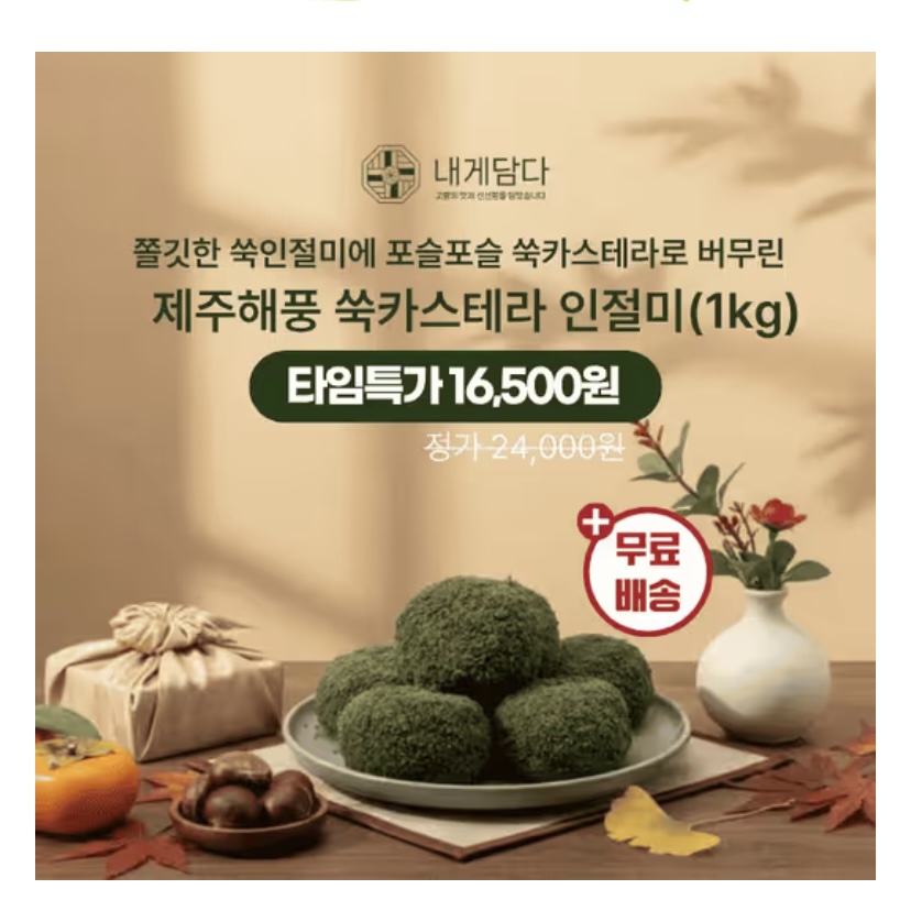 [포슬포슬한 제주 해풍 OOOO / 쑥설기 캐시워크 특가! 20개 16,000원대]내게담다의 신제품 ‘쑥카스테라 인절미’는 고객님이 지어준 특별한 이름이 있습니다.