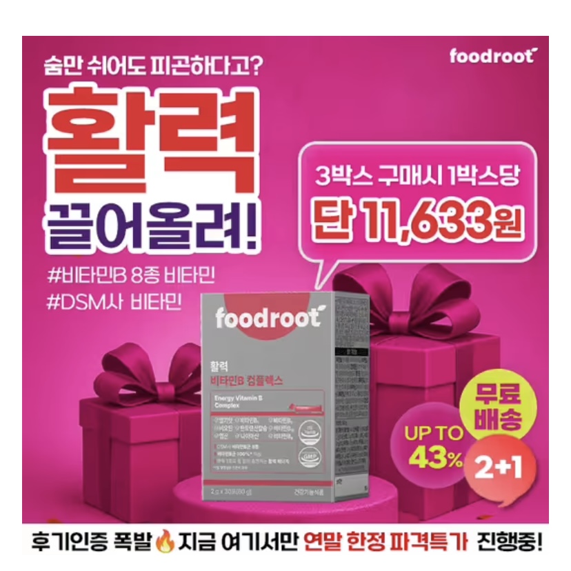 숨만 쉬어도 피곤하고, 앉아 있어도 에너지가 바닥나는 느낌? 그건 체력저하가 아니라 비타민B 부족 신호⚡하루 1포로 충전해드릴게요.