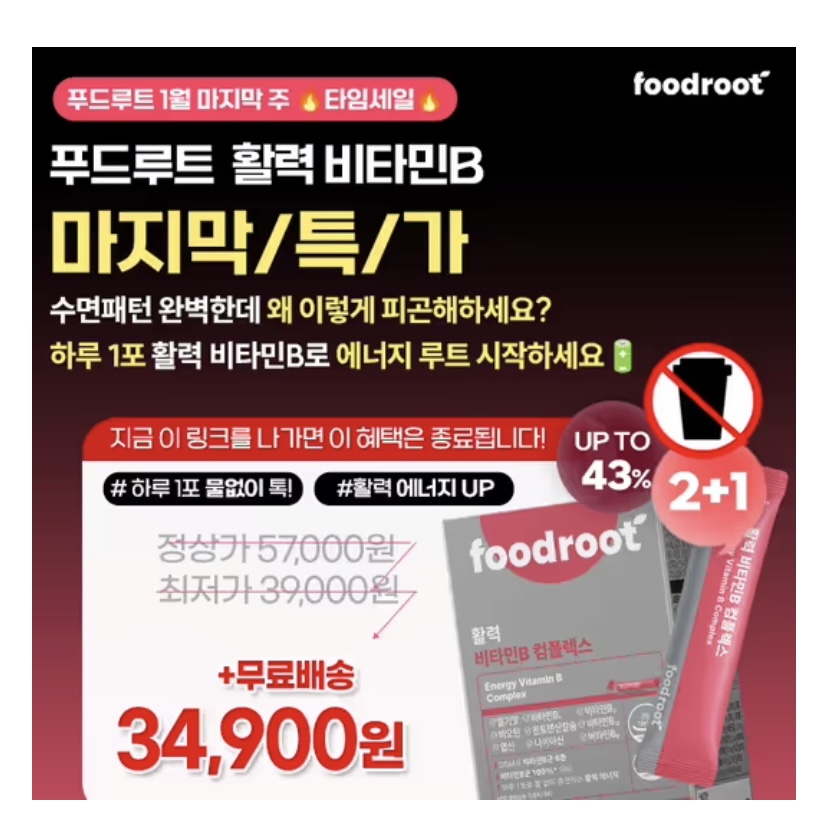 잠도 충분히 잤는데 오후면 피곤해서 집중력 뚝 떨어진다면, 그건 내 몸이 보내는 비상 신호! 푸드루트 활력 비타민으로 컨디션도 에너지도 꽉 채워요🚨혜택 종료 임박