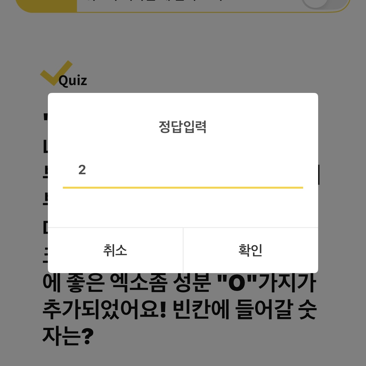 "그냥 이거만 쓱 바르고 쌩얼로 나갔는데 만나는 사람들마다 피부가 좋대요~" 자외선 차단과 피부 관리를 동시에 해주기 때문인데요😍 NEW 리비힐 엑소좀 선크림은 리뉴얼 출시되면서 피부에 좋은 엑소좀 성분 "O"가지가 추가되었어요! 빈칸에 들어갈 숫자는?
