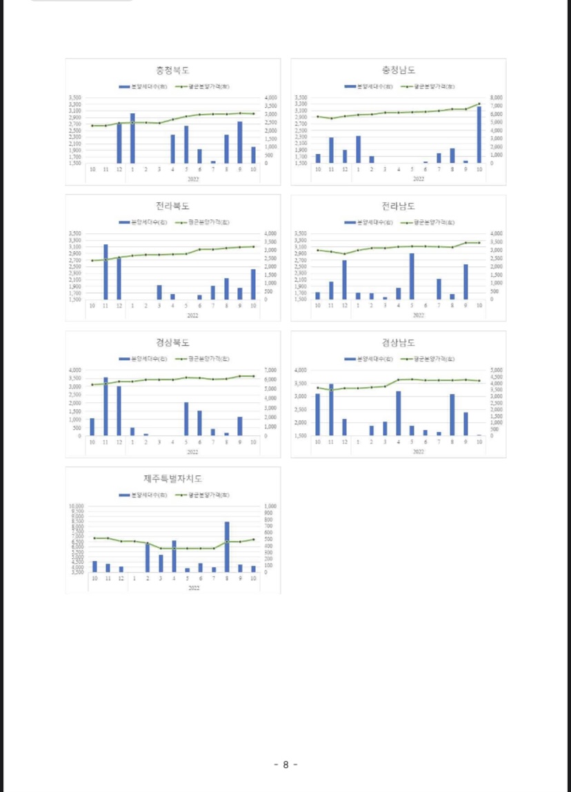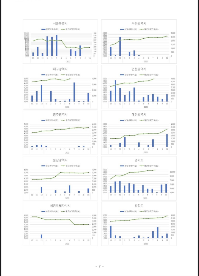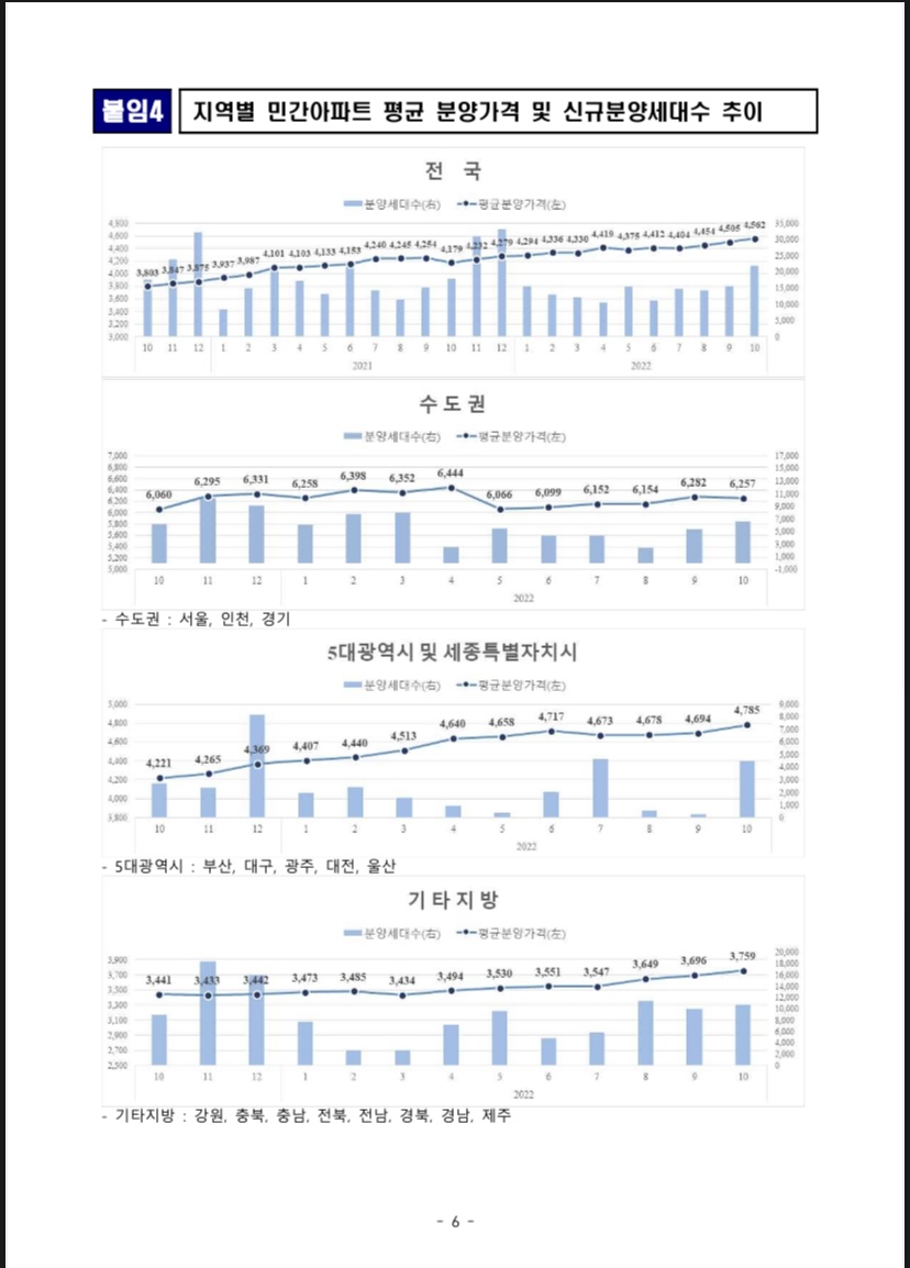 ᄋ 2022년 10월 수도권 신규 분양세대수는 총 6,555세대, 5대 광역시와 세종시는 총 4,494세대, 기타지방은 10,730세대가 신규 분양되었다.