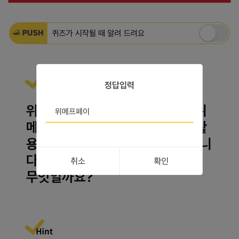 제휴카드 활용시 위메프P 최대5% 적립 캐시워크 정답 위메프에서는 OOOOO 제휴카드 활용시 위메프P 최대5% 적립 위메프에서 똑똑하게 쇼핑